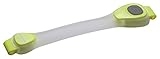 ジェントス LEDセーフティバンドは半透明になっている発光部と、黒色のゴムでできたバンド部の2つのパーツから成っています。発光部の両サイドにバンド部を引っ掛け、ブレスレット状にして腕や手首、足首に付けて使います。