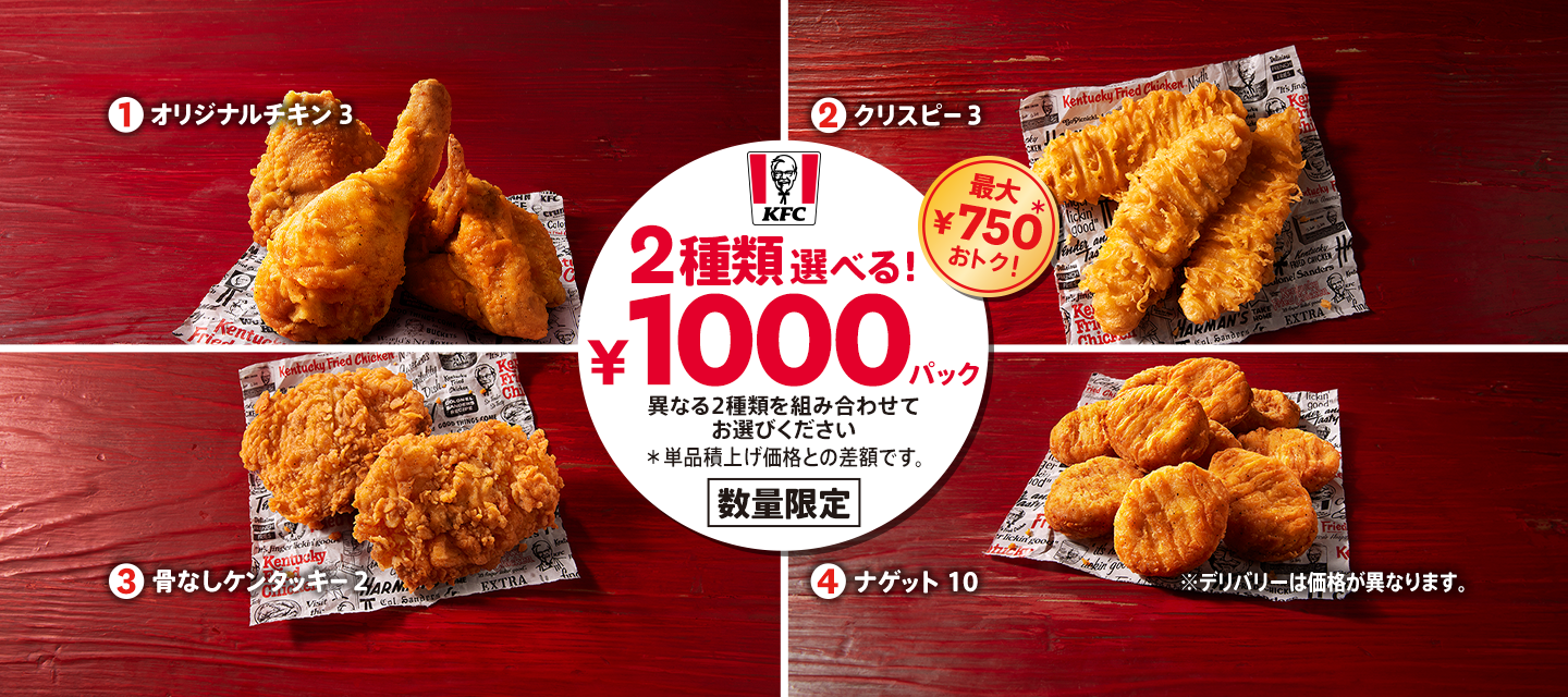 どうせならオリジナルチキン3を2つ選びたいところ「異なる2種類」というのがニクイですね(´艸`*)